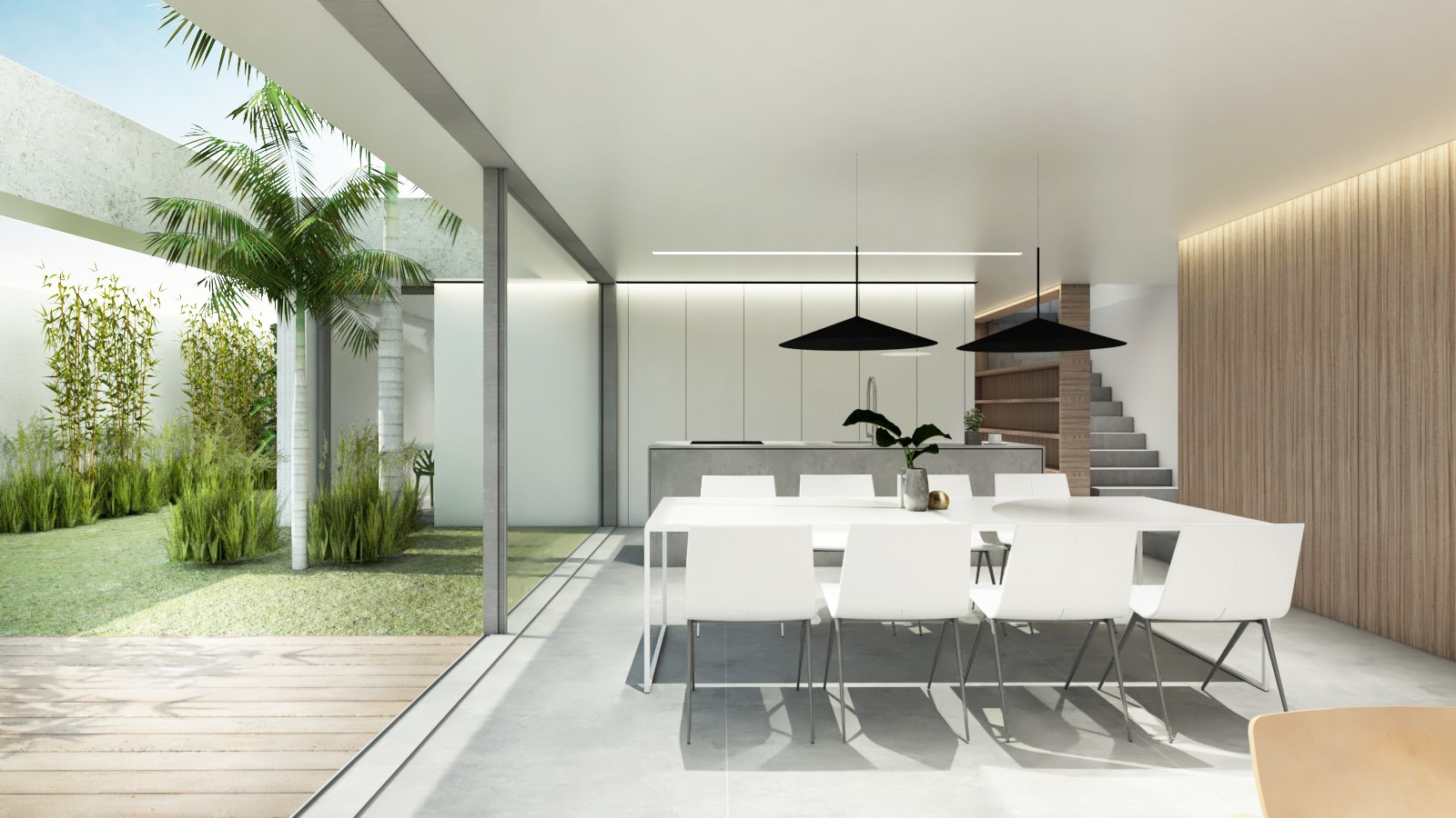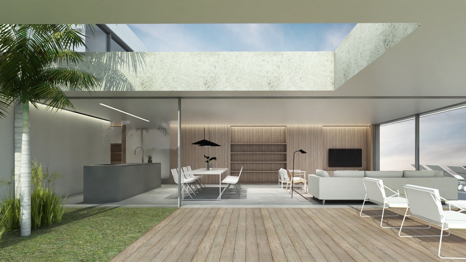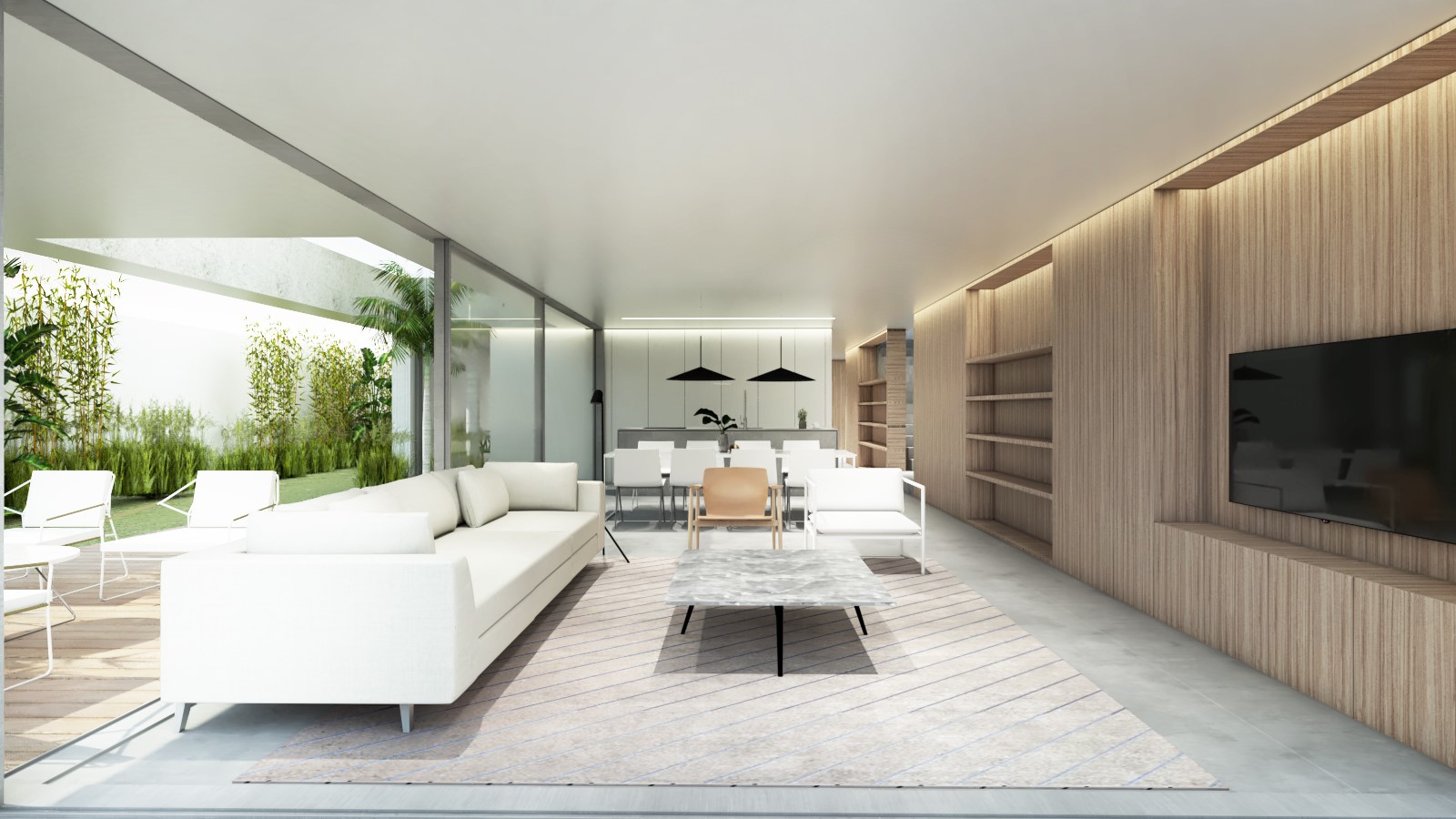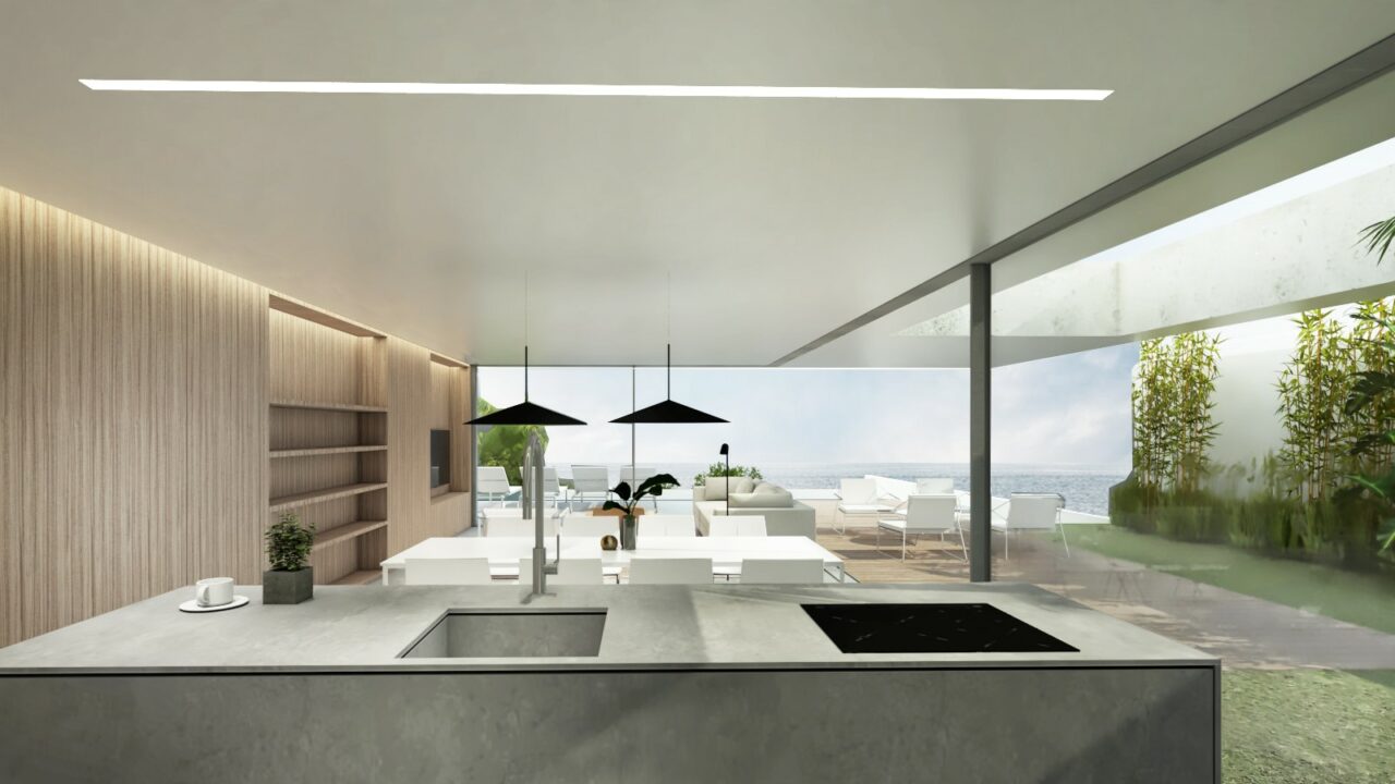 Casa Gipa is located on an elongated plot with a steep slope. The housing program is mostly developed on one floor, leaving only a study on the upper floor. The volume develops linearly, where the bedroom stays open through a garden patio and the living room and kitchen open onto a platform where a large swimming pool develops across its entire front.