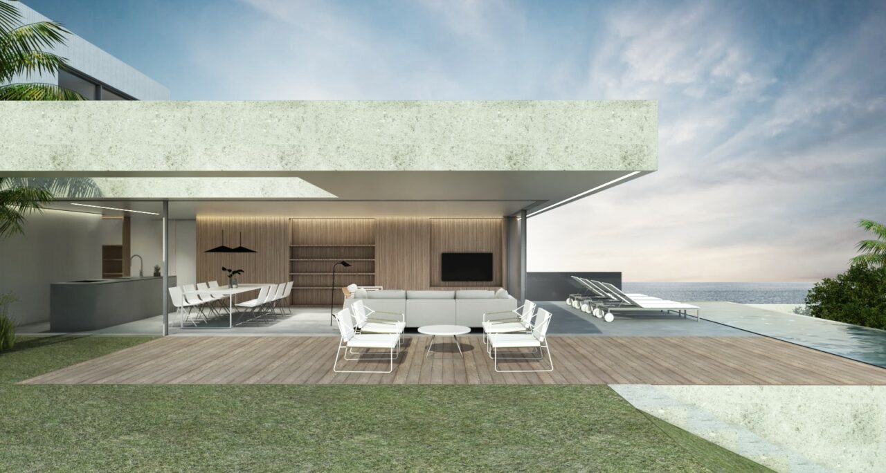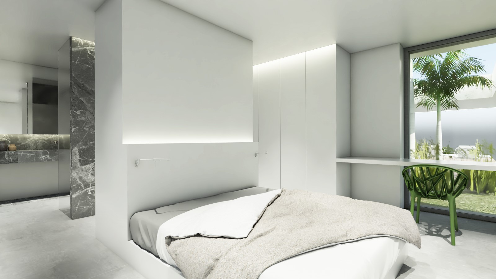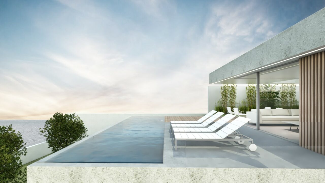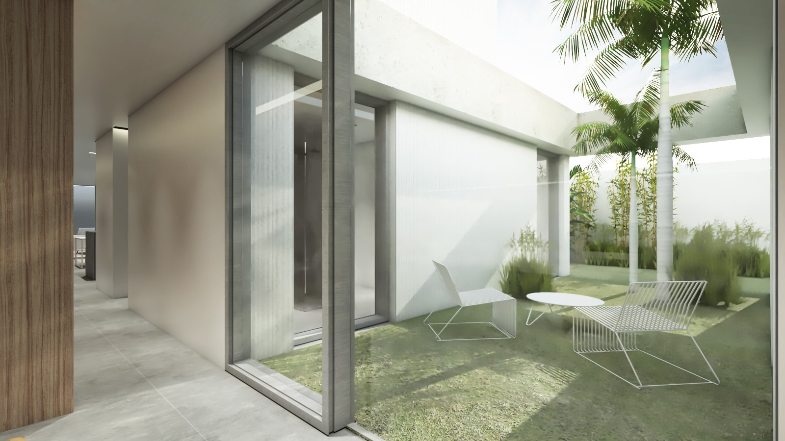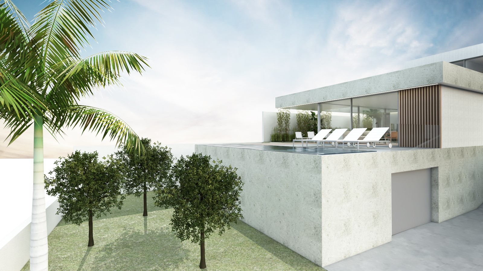 Casa Gipa is located on an elongated plot with a steep slope. The housing program is mostly developed on one floor, leaving only a study on the upper floor. The volume develops linearly, where the bedroom stays open through a garden patio and the living room and kitchen open onto a platform where a large swimming pool develops across its entire front.