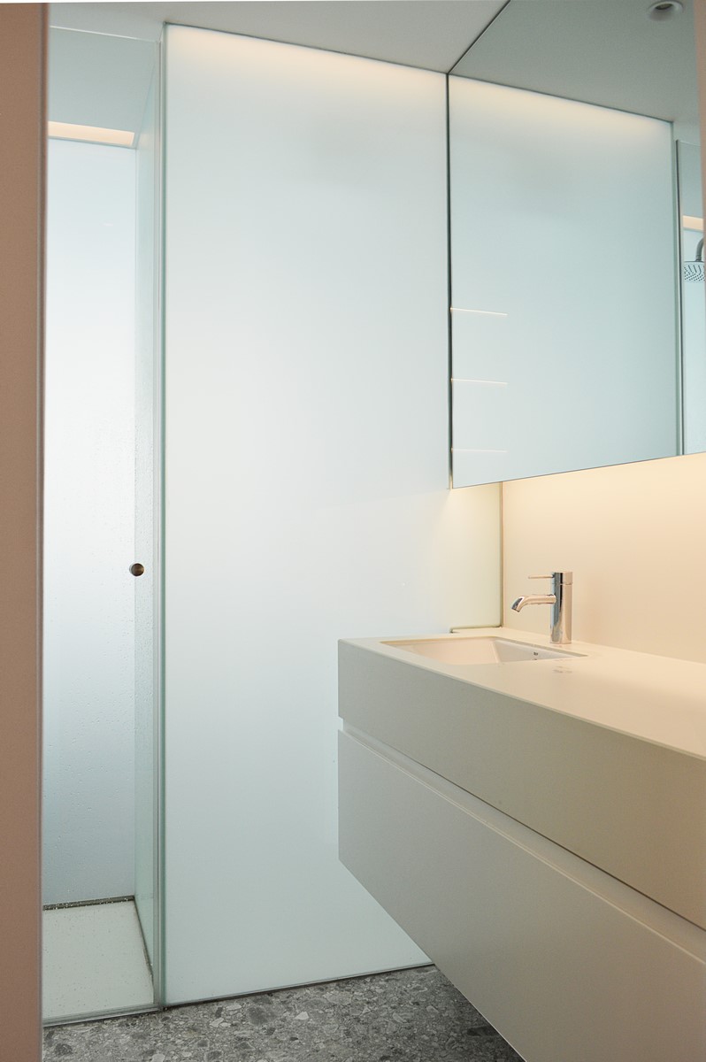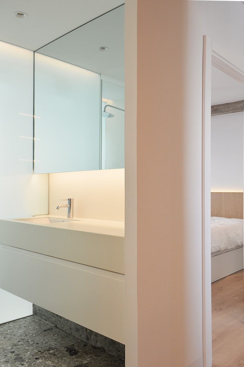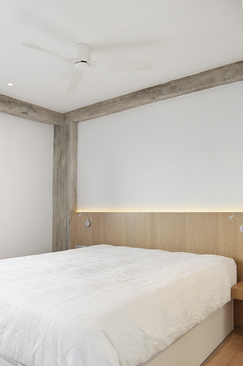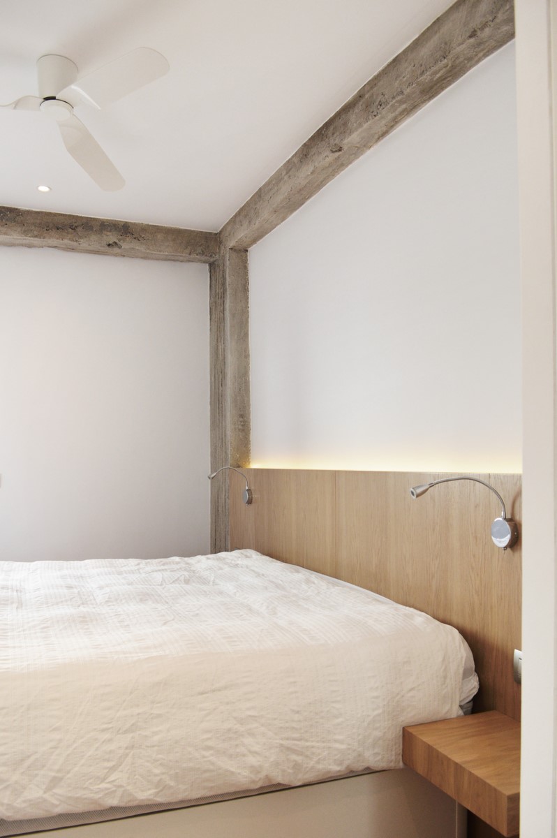 La vivienda se desarrolla a través de un gran elemento lineal a modo de biblioteca que articula el espacio de día y de noche de la vivienda.