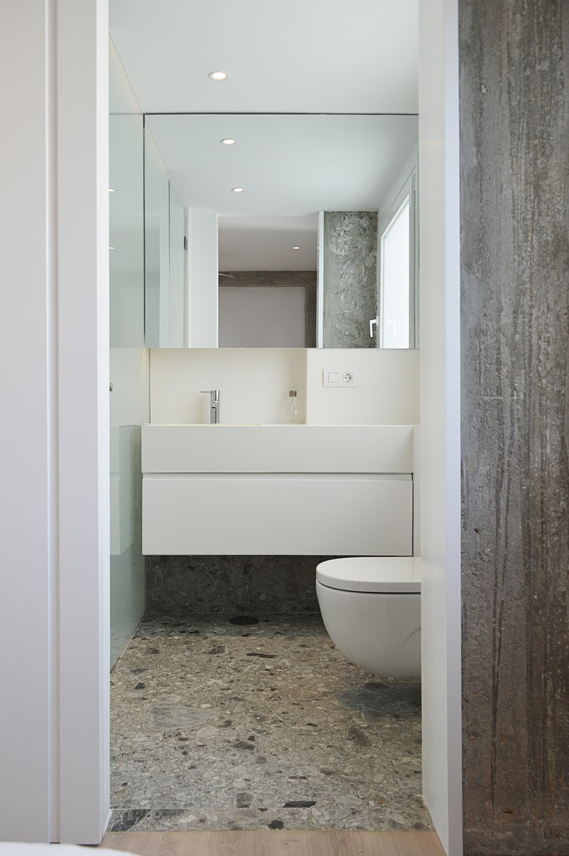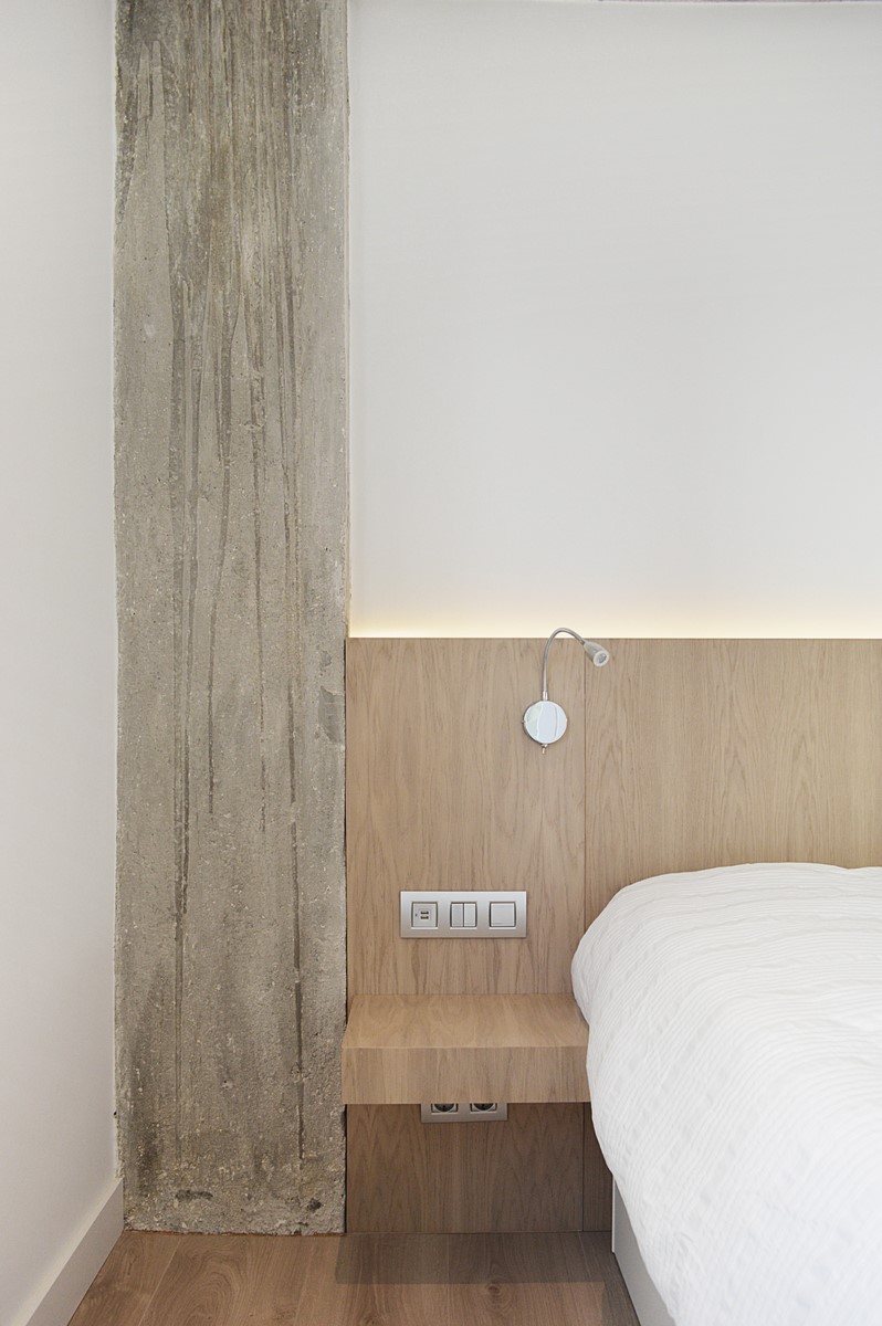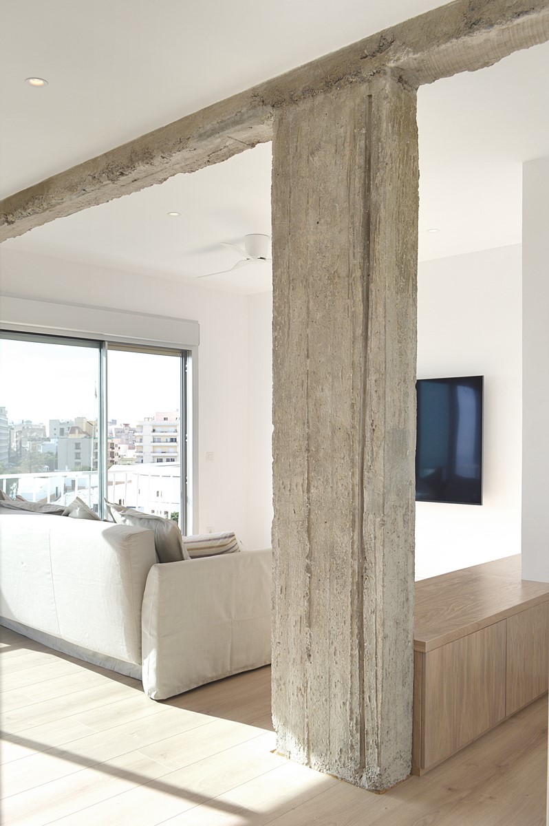 En lo referente a la materialidad se busca un enfrentamiento consciente entre la dureza y la calidez, un hormigón castigado y duro se suaviza mediante el uso de materiales y elementos acogedores como el roble, las tonalidades neutras entre otros que permiten obtener un clima amigable sin renunciar al carácter protagonista de la estructura existente.