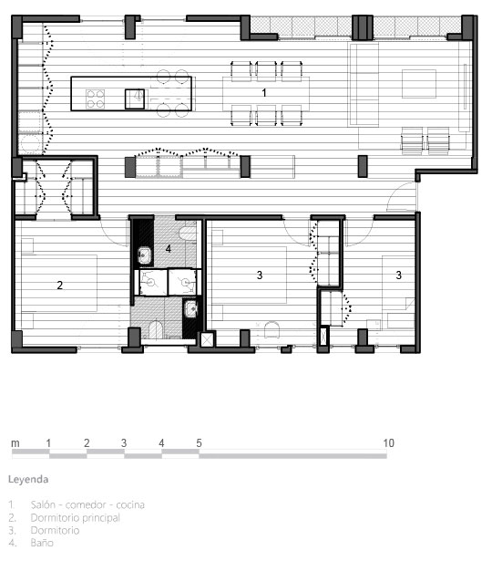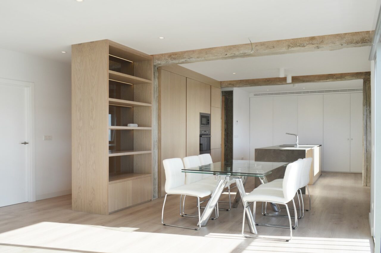 La propuesta por tanto parte de la base de generar espacios flexibles y diáfanos que amplían la sensación espacial y potencian la luz en la vivienda.
