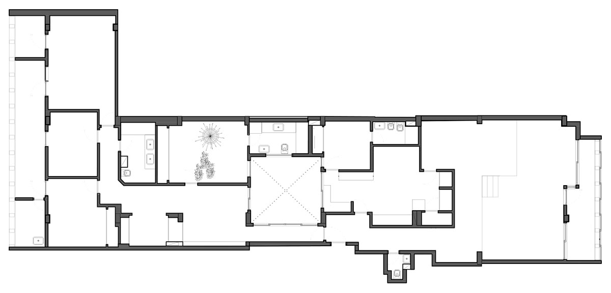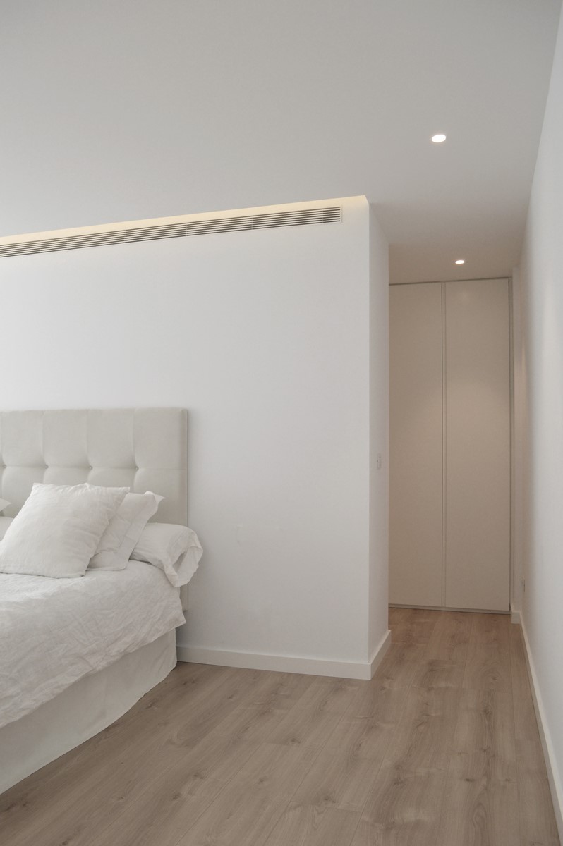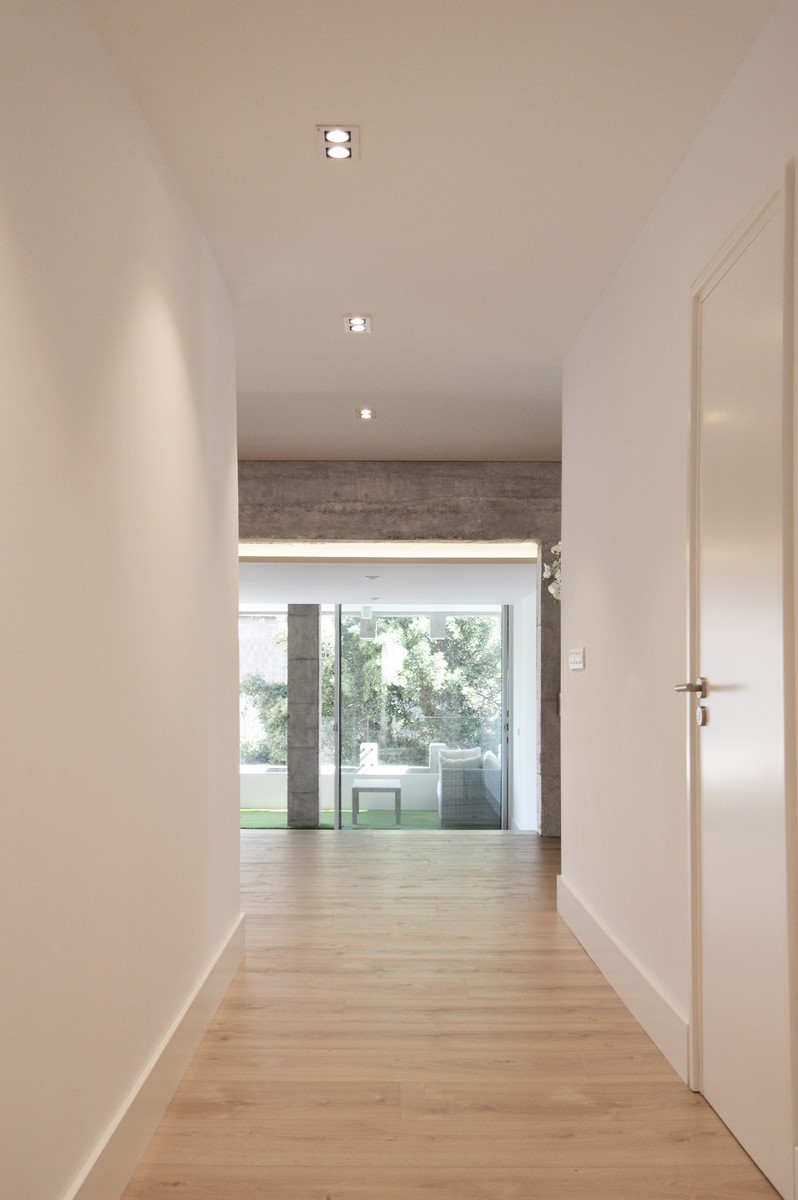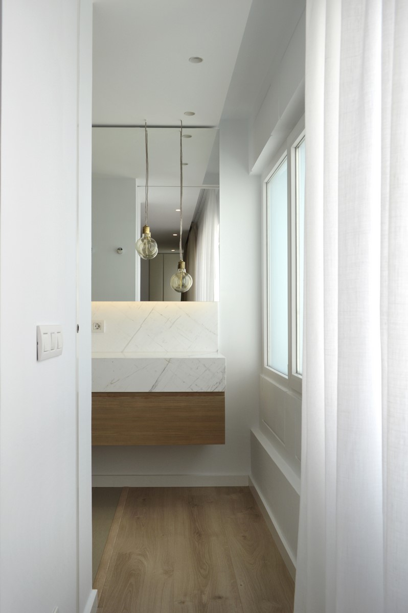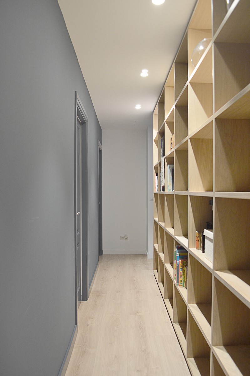 La configuración original de la vivienda resuelta a través de un pasillo excesivamente largo, minimizaba la entrada de luz natural a las zonas de circulación a la vez que potenciaba la proporción alargada de la misma.