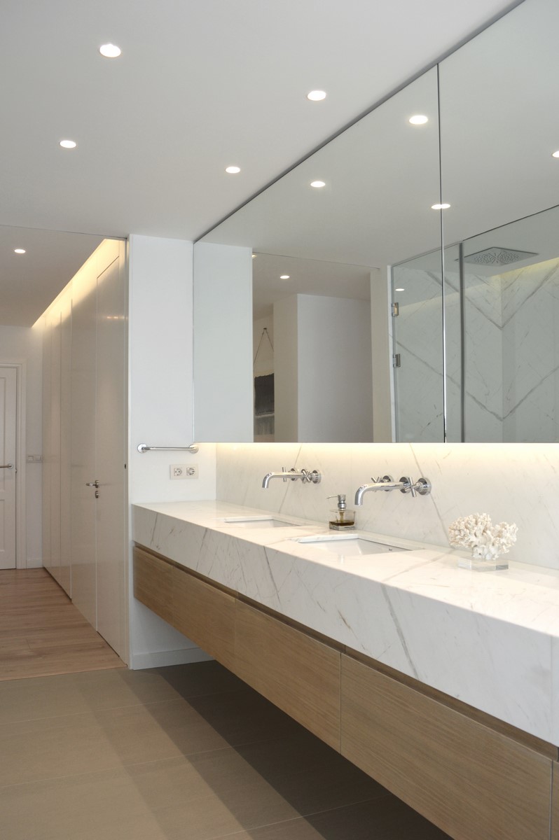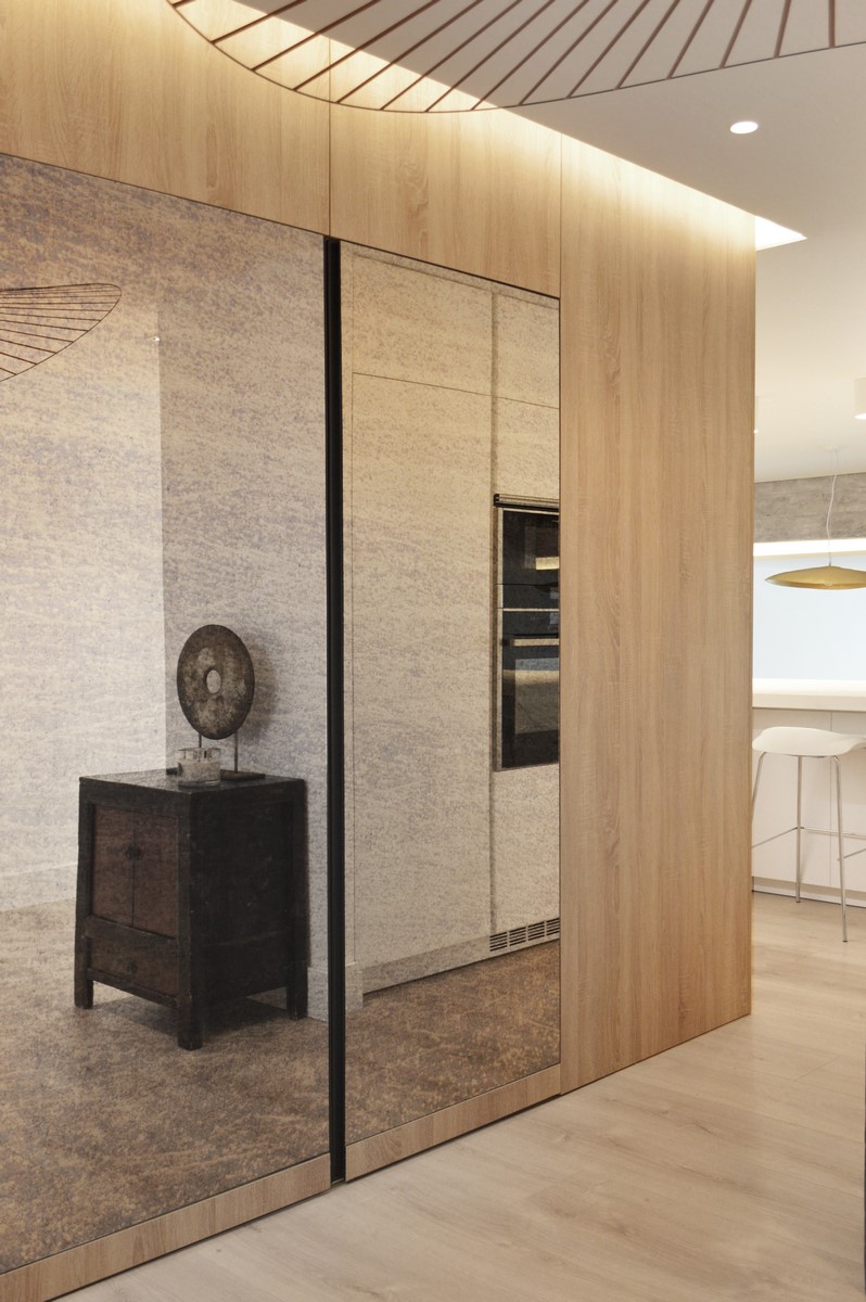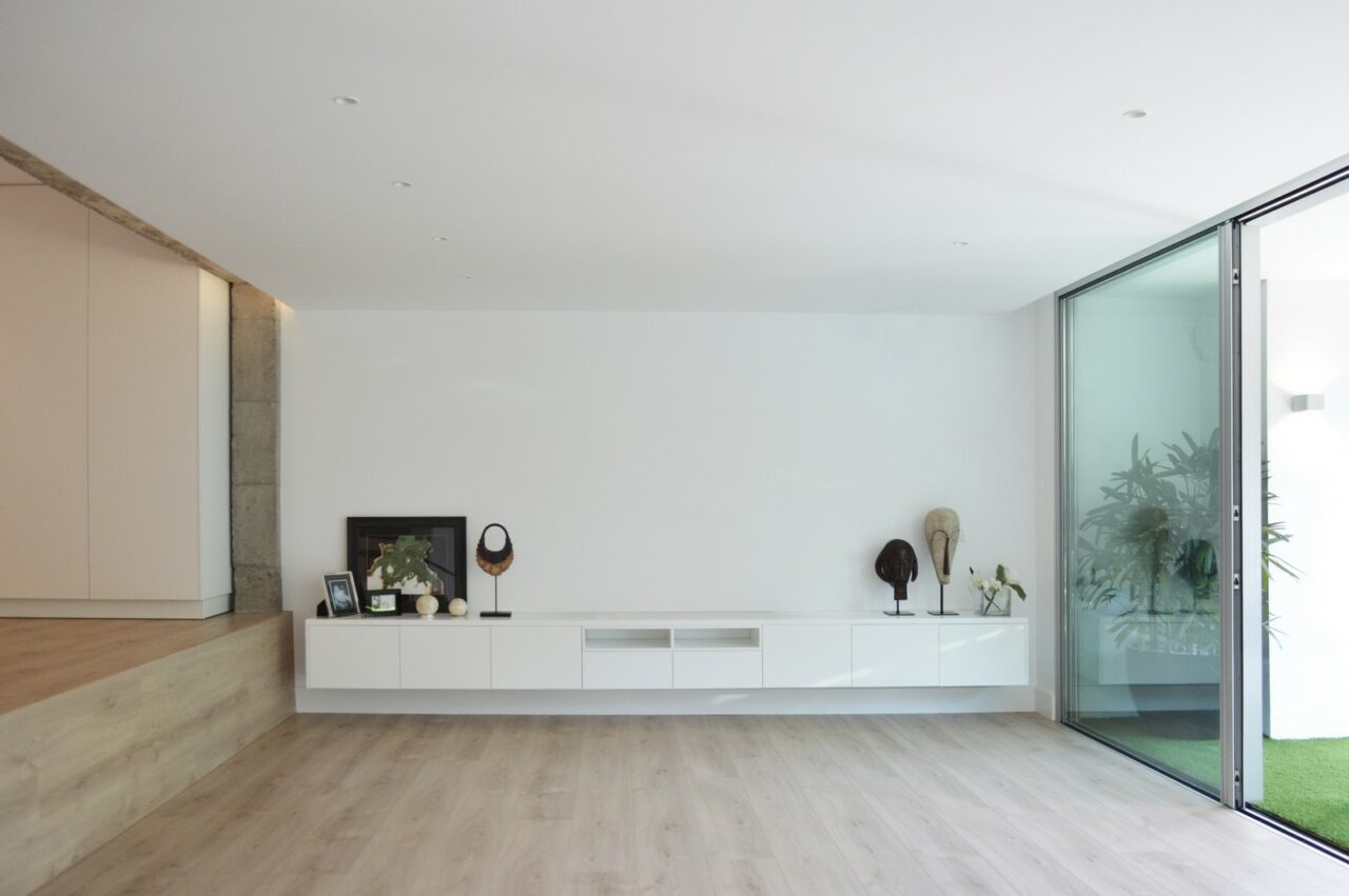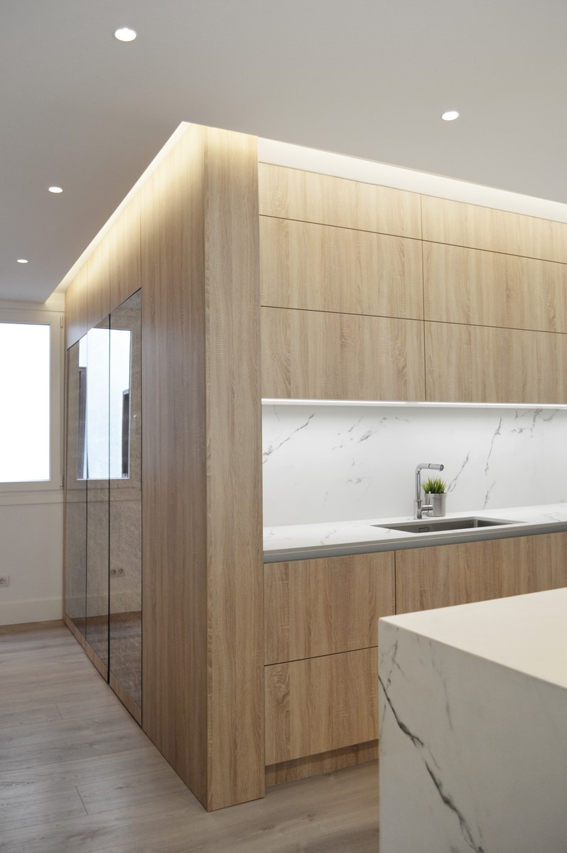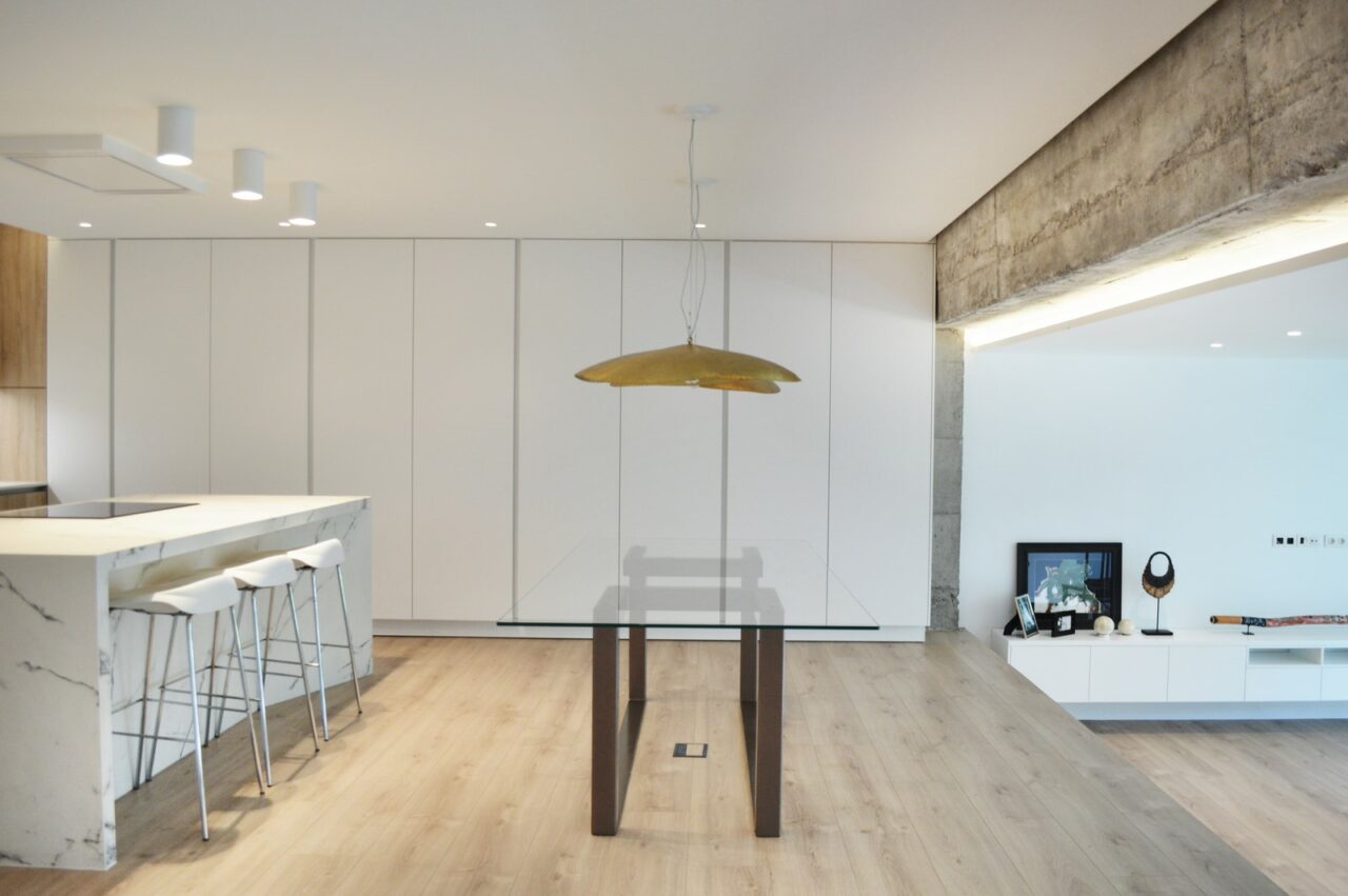 La configuración original de la vivienda resuelta a través de un pasillo excesivamente largo, minimizaba la entrada de luz natural a las zonas de circulación a la vez que potenciaba la proporción alargada de la misma.