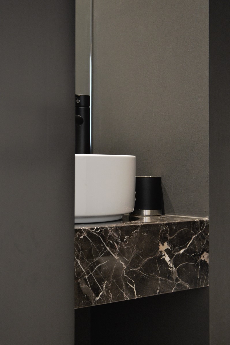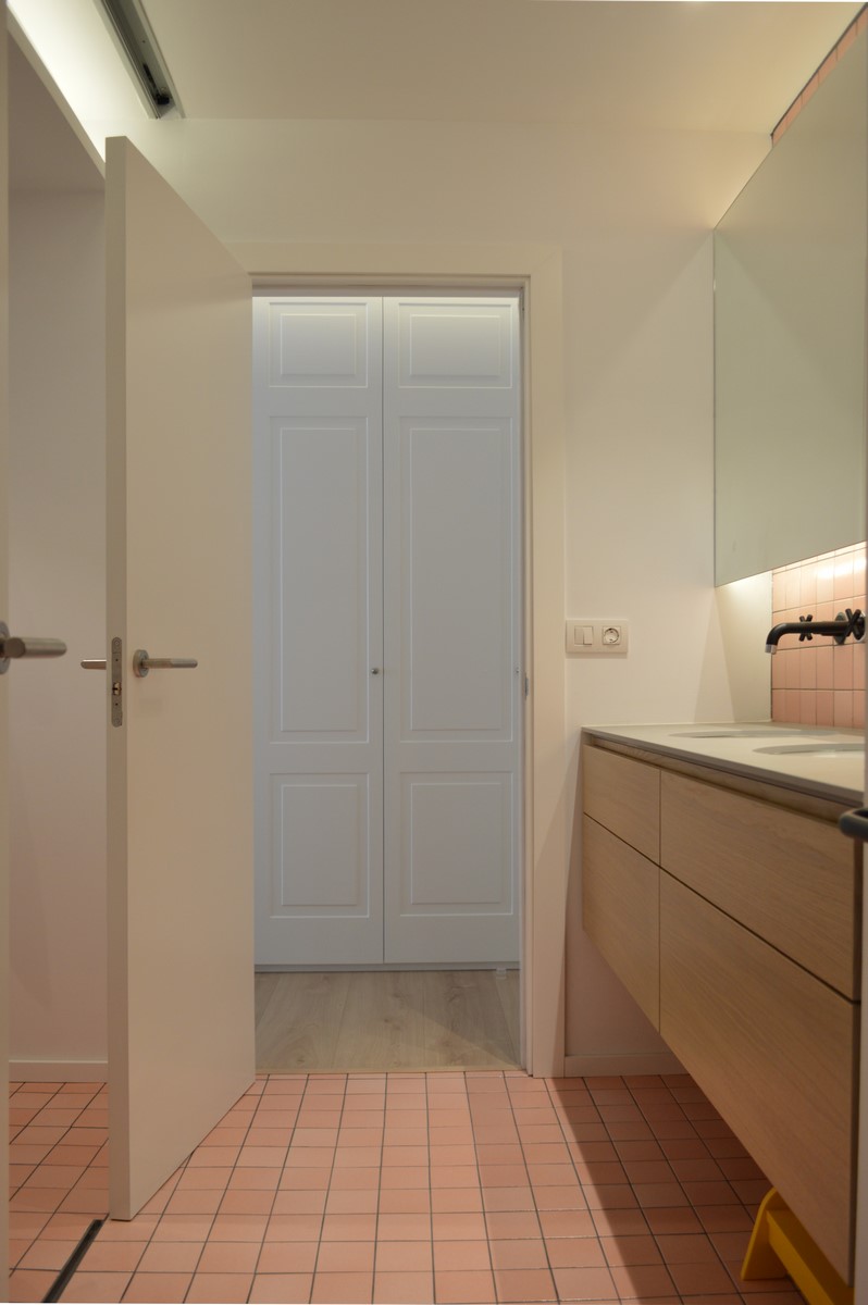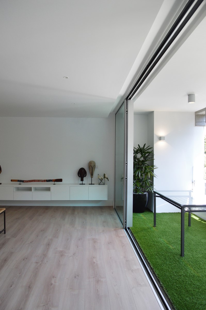 El acceso original de la vivienda se resolvía a través de un pasillo sin luz natural, la nueva configuración resuelve la entrada de la vivienda a través de un hall de circulación con luz natural a la escala de la vivienda.