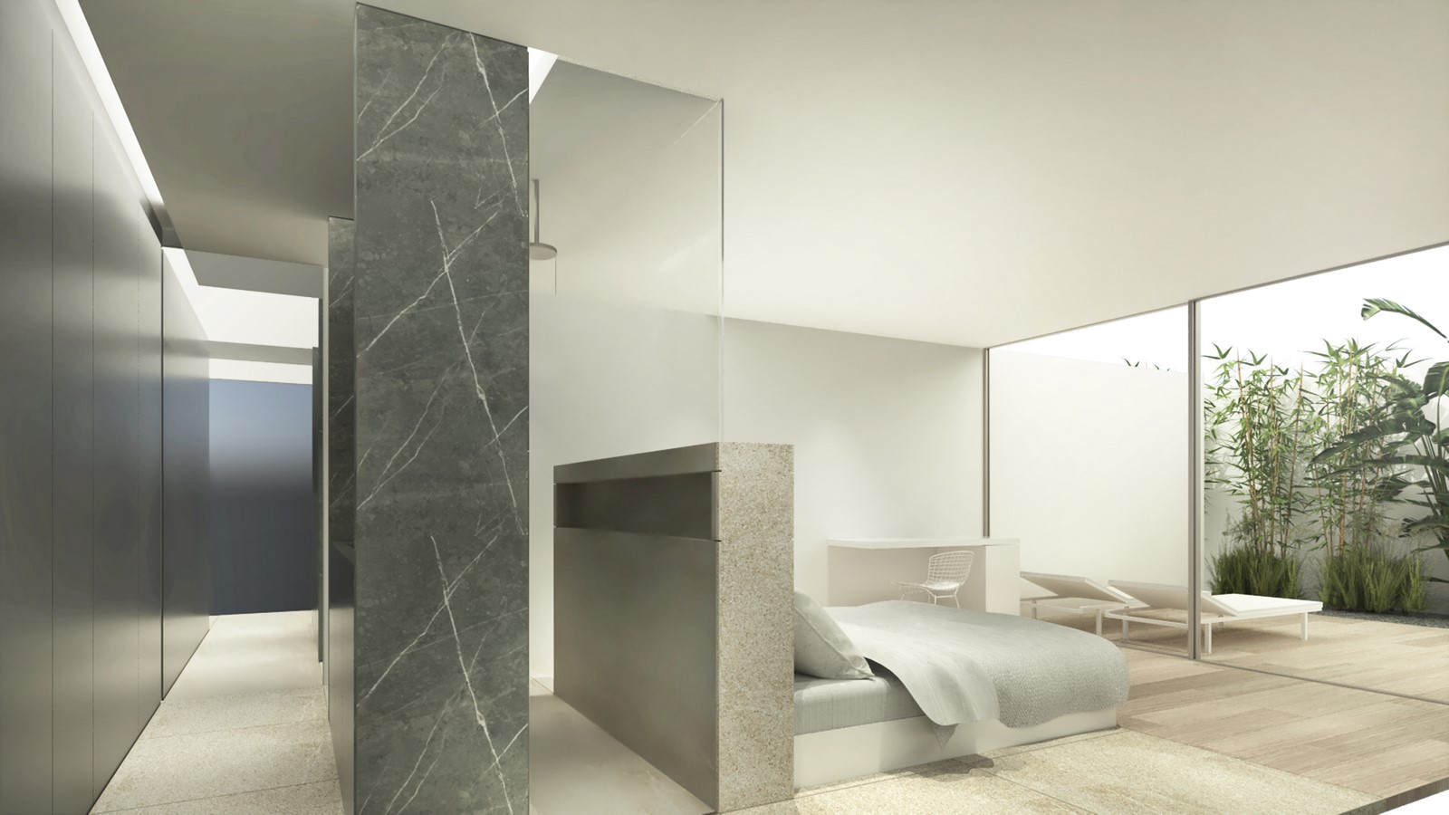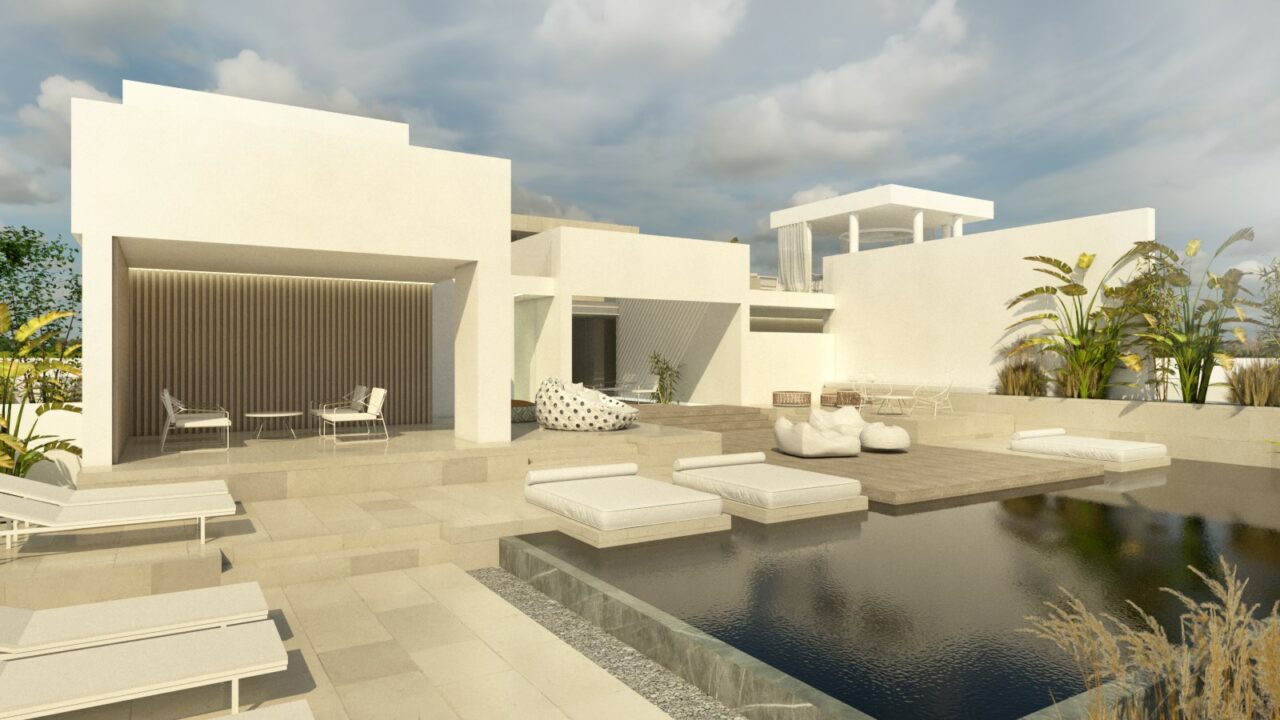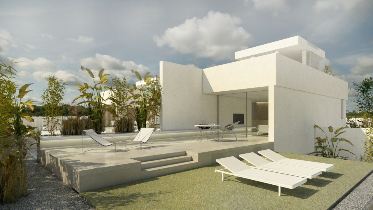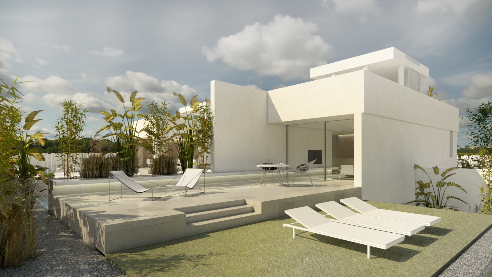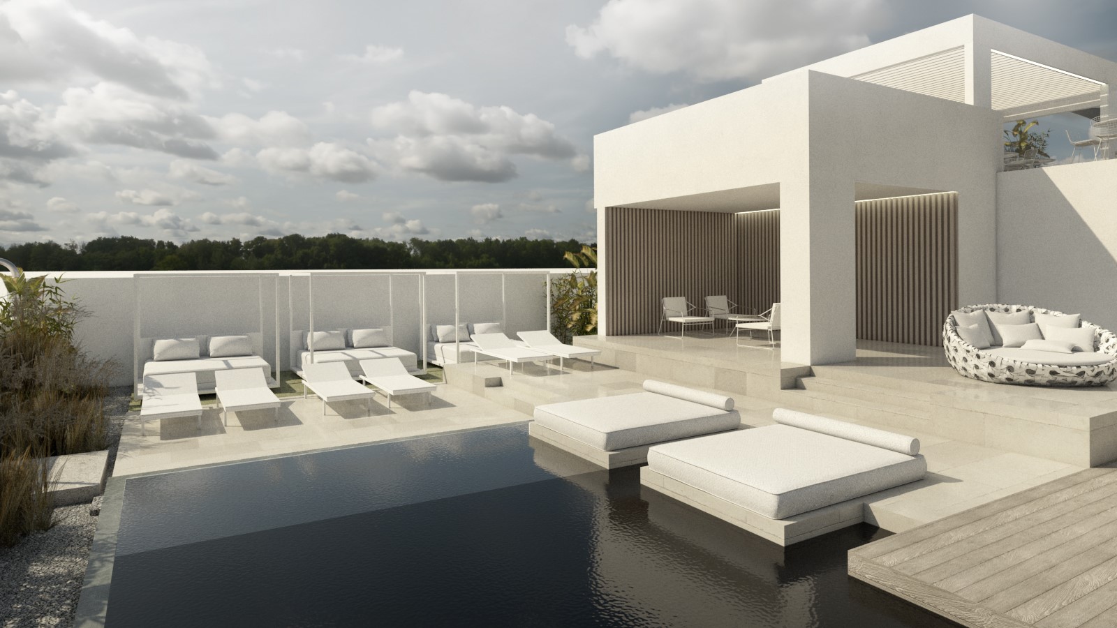 La idea del proyecto parte de la premisa de generar espacios exteriores que se relacionen de manera directa con el interior de la vivienda. La cubierta del edificio se plantea como un lugar de ocio de todo el conjunto.
