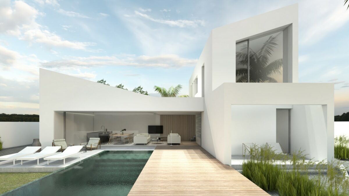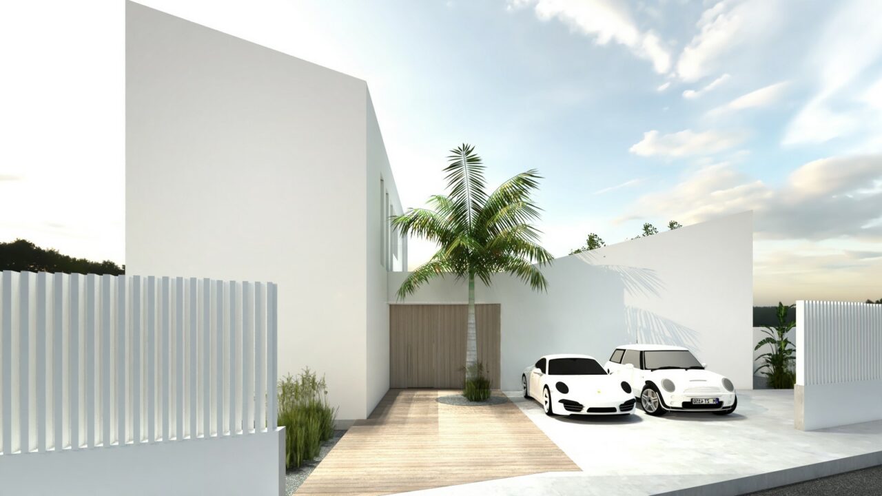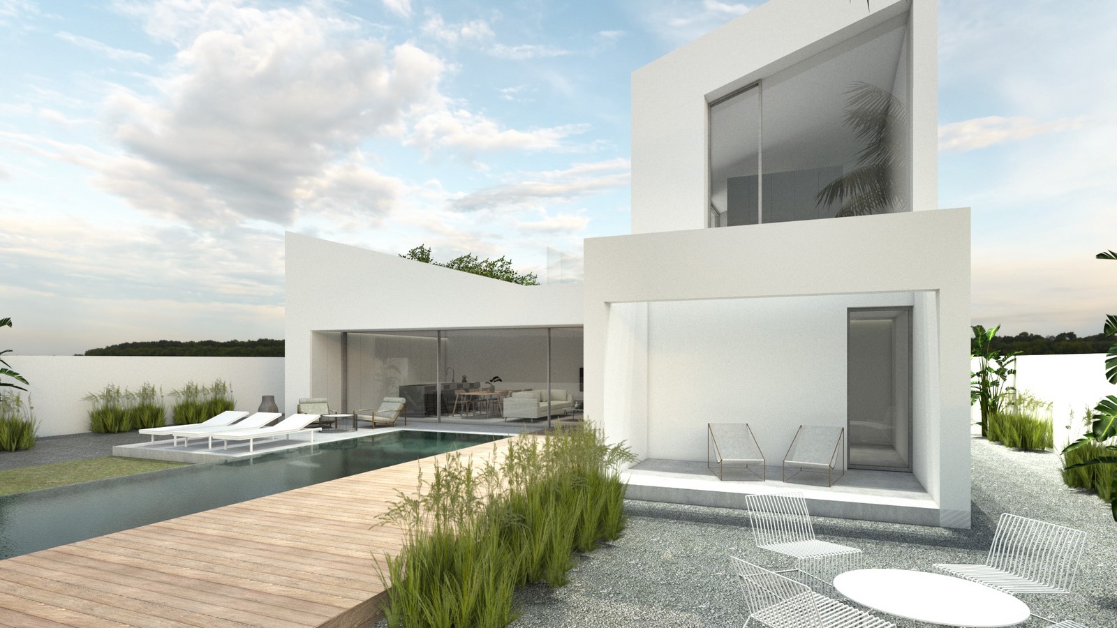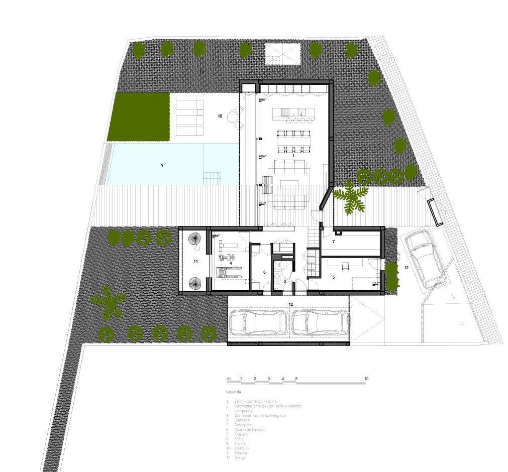 El espacio de día de la vivienda, se relaciona directamente con una plataforma exterior donde se desarrolla un gran plano de agua que se funde con el mar y las imponentes vistas del lugar. Una gran corredera tricarril permite ese contacto directo con el exterior. El espacio de trabajo y de deporte se desarrollan también en planta baja en uno de los extremos de la vivienda permitiendo más privacidad en relación con el salón-comedor-cocina. La zona de noche de la vivienda se plantea en planta alta, la suite principal se relaciona con una gran cubierta vegetal.