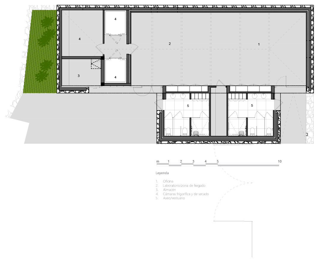 El proyecto de reconstrucción de almacén desarrolla un edificio de forma rectangular en su planta, constituido por dos volúmenes adosados. Se trata de un edificio constituido por la adición de dos volúmenes de planta rectangular, un volumen principal que contiene el programa principal del edificio y de mayor altura y un segundo volumen, de menor altura, que contiene dos vestuarios y un pequeño almacén.