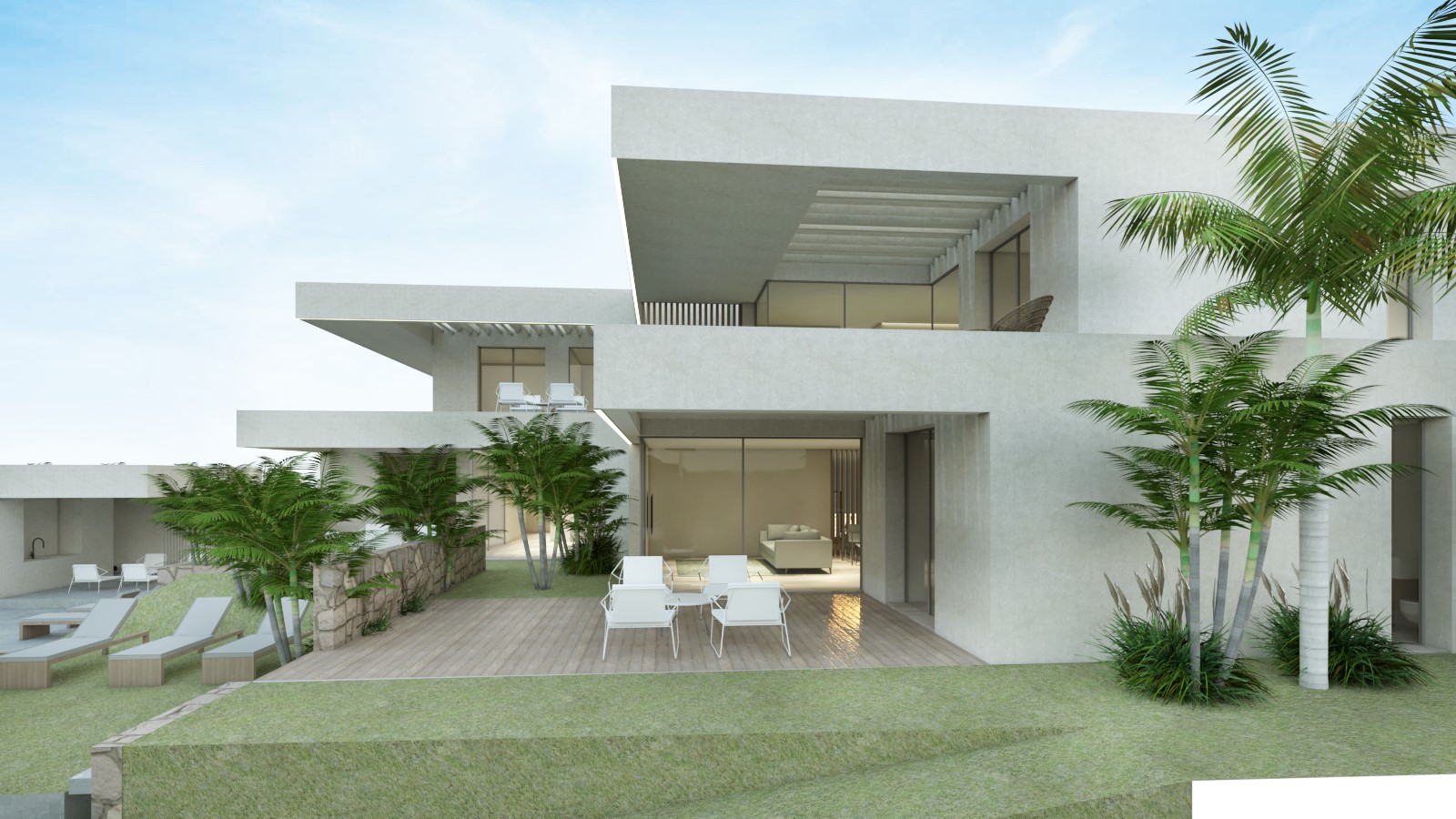 La vivienda se sitúa en una parcela de grandes proporciones y sin grandes desniveles, el proyecto plantea un programa bastante extenso que incluye zonas deportivas y de ocio. Se plantea un volumen fragmentado a base de volúmenes que minimizan la enorme escala de la vivienda. Las zonas exteriores en contacto directo con la vivienda se resuelven a través de grandes voladizos con aperturas que dan dinamismo a la intervención a la vez que dotan de sombra a estas zonas.